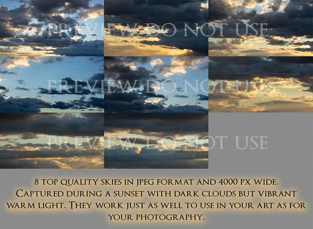 • You are NOT allowed to claim the sky overlays as your own, resell or re-share them to others (including friends!)